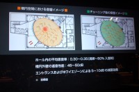 また、7.1chのサラウンド音声システムも採用。メインホールの形状が楕円形なので音場の制御は難しくなるが、壁面に、音を吸収するパネルと反射するパネルをランダムに配置した「アンビバレント・ウォール」を採用することで、自然な音場構築を可能にした。