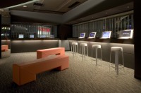 ホールを企画・設計したソニーPCL(株)事業本部クリエイティブ事業部 事業部長の藤井暁氏は、10年前にソミドホールを担当した人物。「当時、ソニーのファウンダーである盛田昭夫氏に施設のプレゼンテーションを行ったが、色々と考えた末に提示した案を、一発で『まるっきり違う』と否定された。盛田さんは、『銀座の一等地のビルに、枯れ葉でも敷いて、散歩するようなものが欲しい』と仰った」と秘話を披露。その時の話を受けて、OPUSでは「とにかく居心地の良い空間を目指した。母親のおなかの中で守られている胎児のような安らぎを演出した」という。