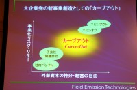 “カーブアウト(Carve-Out)”とは、直訳すると「切り出す、削り出す」の意。親会社の手厚い保護のもとで新規事業を育成する社内ベンチャーと、会社を飛び出して新しい事業に取り組むスピンアウトの中間に位置する事業モデルだ。今回のケースで言うと、ソニーは技術や販売など様々な支援をエフ・イー・テクノロジーズ社に対して行うが、資本による支配は行わない。一方、出資する投資ファンドは、事業を成功させ、資金を回収することを目指す。ソニーは、将来エフ・イー・テクノロジーズ社を再び傘下に入れたくなった場合、M&Aの際の優先権を与えられている。