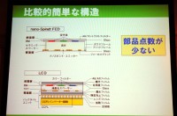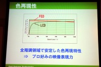 前述したように、会場には液晶やプラズマとFEDを比較する展示も行われていたが、長谷川氏は、「FEDの特長を分かってもらいたいという気持ちで置いたもので、液晶やPDPが劣っていることを示すためにやっているわけではない。我々は液晶をやっつけたいとか、PDPに勝ちたいなどと大それた事は考えていない。クルマが軽自動車から高級車まであるように、ディスプレイにも液晶やPDP以外の選択肢があってしかるべき、と考えている」とした。