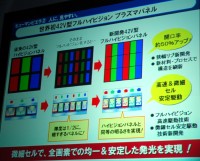色再現性では、パネル蛍光体の特性をHDTV規格の色域に近づけ、HDTV比100%を実現した。デジタル放送はNTSC規格ではなくHDTV規格で送られてくるので、これに対応した格好だ。