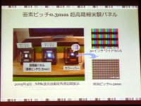 スーパーハイビジョンを100インチで実現するための技術としては、パネルの高精細・高効率化を図ったPDPの開発を続けており、現在では画素ピッチ0.3mmの高精細パネルの開発に成功している。