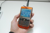 ストレートタイプのデザインを採用する本機は、筐体の厚さを13.9mmまでコンパクト化し、手のひらサイズのフィット感を実現。PCのキーボードと同じQWERTY配置のキーボードを採用したほか、タッチパッドのようにを指でなぞったりタップして使える「JOGGR」機能も併せて搭載する。Bluetooth Ver.2.0にも対応する。