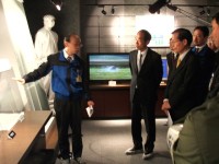 視察時間は約1時間半だったが、短い時間の中で同工場の一番館ショールーム、三番館などを精力的に見て回った。ショールームで動画特性に優れたプラズマの優位性の説明を受け、三番館ではパネル製造ラインのほか、排水回収処理施設など環境対応施設も見学した。