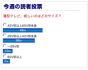 5月21日〜5月27日の読者投票:「薄型テレビ、欲しいのはどのサイズ?」