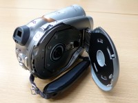 【SPEC】●記録ディスク:8cmDVD-R/-RW/-R DL ●映像記録規格:AVCHD(HD)、DVD-Video(VIDEOモード/VRモード)(SD) ●カード記録メディア:miniSDメモリーカード ●撮像素子:1/2.7型 CMOSセンサー(総画素数:約296万画素) ●撮影レンズ:光学10倍レンズ、デジタル併用40倍/200倍 ●ファインダー:0.27型カラー液晶 ●液晶モニター:2.7型 ワイド液晶(約21.1万画素) ●入出力端子:HDMI端子、AVミニ端子、コンポーネント端子(D3/D1)、USB端子 ほか ●電源:DC 7.4V(バッテリーパック)、DC 8.4V (DCIN) ●外形寸法:約65W×93H×133Dmm(グリップベルトを除く) ●質量:本体 約530g、撮影時 約605g