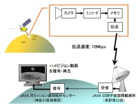 撮影したハイビジョン映像はエンコーダーによりデジタル圧縮され、長野県臼田にあるJAXA臼田宇宙空間観測所に蓄積伝送。その後、神奈川県相模原のJAXA月ミッション運用解析センターで元のハイビジョン信号に復号する計画だ。なお、衛星からの伝送速度は10Mbps程度で、1分間の動画データの伝送に約20分かかるという。