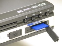 本体正面にはSDカードスロットやUSB端子も設けられ、記録媒体に入っている動画や音楽、写真ファイルを直接読み込んで再生できる。音楽ファイルはMP3/WMA、動画ファイルはMPEG4やDivX/XVIDの再生にも対応する。