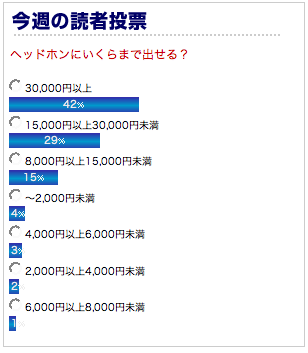 今週のお題は「ヘッドホンにいくらまで出せる?」。読者の投票結果は以下のようになった。