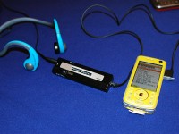 ケーブル端子はステレオミニプラグで、通常のヘッドホンと同様にポータブル機器などに接続して音楽を楽しむことが可能。また別売の「パワーウーハー」を使用することで携帯電話の平型端子に接続することができる。パワーウーハーは通話用マイクを内蔵。音楽/通話の切り替えをワンボタンで行うことができるほか、音量の調節を行うことが可能だ。