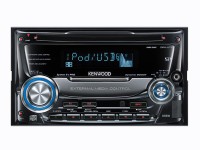 本機は、デュアルサイズの車載用CD/USBレシーバー。USB端子とAUX端子をフロントパネルに搭載しており、ポータブルオーディオ機器を接続して音楽を楽しむことが可能だ。USBマスストレージクラスに準拠したUSBメモリー内の音楽データの再生にも対応している。また、別売のiPodインターフェースケーブル「KCA-iP200」を使用することで、iPodを接続して使用することもできる。