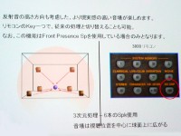 「シネマDSP」は、22のサラウンドプログラムを用意した「シネマDSP plus」を搭載。さらに本機では新たに、空間の「高さ」方向の音場データをプログラミングすることで、これまでのシネマDSPから空間再現力を向上させた「3Dモード」を搭載。3Dモードは、フロントスピーカーの上方にプレゼンススピーカーを設置したときに有効となる機能で、22あるすべてのプログラムに対してON、OFFを選択できる。大画面でコンテンツを楽しむ場合に最適で、ホールやライブハウスなどの実測系プログラムでは天井や床の反射音によって生まれる上下方向の表現をより自然に再現することができるという。