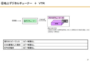デジタル放送の単体チューナーとVTRを録画した場合。これは実は現時点でもコピー制限はとくにかけられていない。このルールは特に変更はない。