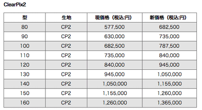 (株)ホームシアターは、同社が取り扱うSCREEN RESEARCH社サウンドスクリーン「ClearPix2」「ClearPix2Black Backing Layer」の価格改定を実施すると発表した。