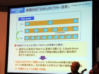 また本機は、2-3プルダウンされた映画などのコンテンツ(60コマ/秒)をなめらかに表示する「なめらかピクチャー」機能を搭載。同機能では、2-3プルダウンされた映像を自動的に検知し、オリジナルの映像を検出。そのオリジナルの各コマ間に3枚の補間映像を挿入し96Hz駆動で表示することで、スムースな動きで映像を楽しむことが可能となる。なお本機は24p映像の入力には対応しない。