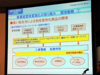 同氏もまた「三菱電機の顔としてAV事業をしっかりやっていくつもりだ」と冒頭にアピール。「大型LEDスクリーンやDLPプロジェクターといった業務向け製品が好調。これからはコンシューマー製品である液晶テレビを重点商品と位置付け力を入れていく。またそのためには、各製品間で開発・調達の連携を図ることが必要不可欠である」と語った。