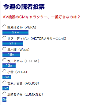 今週のお題はAV機器のCMキャラクターについて。読者投票の結果は以下のようになった。