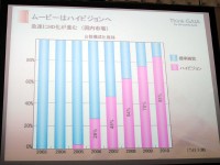 さらに、デジタルムービー市場でHD化が急速に進んでいることや、HD対応薄型テレビの普及率が上がっていることに言及。どちらも2010年にはHD対応モデルが市場のほとんどを占めるだろうと予測した。「2003年に『C1』を発売して以来、Xactiは記録画素数の向上やムービー機能の強化に努めてきた。今回フルHDモデルを投入することで、Xactiのラインナップは更に充実した。エルゴノミクススタイルを採用し、手になじみ使いやすいボディを実現したほか、ムービーと写真両方をスムーズに撮影できる。さらに、筐体が小さく軽いので、携帯性にも優れている。Xactiを使って、日々の感動を未来に残してほしい」(久保氏)