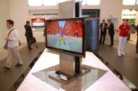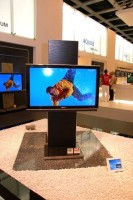 そのほかにも先日国内で発表された、50V型クラスで主要ディスプレイ部の“厚さ20mm”を実現した超薄型・次世代液晶ディスプレイも試作機が展示され、来場者の目を釘付けにしている。また2010年の立ち上げが予定されている大阪・堺の新工場もパネル展示等により、積極的に紹介されていた。