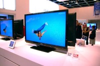 シャープのブースには欧州EISAアワードの「タイムシフトテレビ賞」を受賞した、HDD内蔵52V型“AQUOS”「LC-52HD1E」が展示され注目を浴びている。