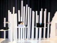 今回の製品は、同社創業者のMAX GRUNDIG氏(1908-1989)の生誕百周年を祝うために企画されたもので、新たな技術を加えるとともにデザイン面でも現代的な要素を取り入れられ、球状のハウジングに埋め込まれ4個のスピーカーユニットによって、今まで経験したことのないまったく新しい体験が可能になったと、同社では語っている。会場で実際に聴いてみたが、体を音に囲まれるような不思議な感覚を覚えた。