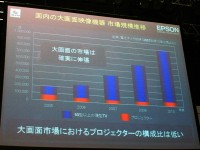 同氏は「近年、大画面映像機器の市場拡大が進んでいるが、主にテレビが中心でありプロジェクターの構成比は低い」と指摘。プロジェクターで大画面を楽しむというスタイルが一般に浸透していないことを説明した。
