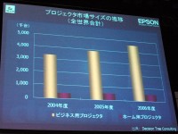 同社の情報関連機器セグメントの連結売上高において、プロジェクターは順調に数字を伸ばしているという。ただしそのほとんどがビジネス用プロジェクターであり、ホーム用プロジェクターの売り上げは2004年度からほぼ動きがない。小口氏は「ホーム用プロジェクターは未だ一部の愛好家のための製品にとどまっている」と指摘した。