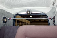 軽自動車で入賞の栄冠を勝ち取ったユーザーも。ユーザーカー部門のカーシアターシステムクラスで3位に輝いた(有)サウンドワークスの秋山氏は、「軽自動車の狭い車内空間で、どこまでカーシアターを楽しめるかがコンセプト。アルミダイキャストエンクロージャーに統一したスピーカーの配置には苦心した。リスナーからの最適な距離や角度を割り出すのに努力した」と話した。