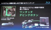 Lシリーズは、“思い出を残す”をキーワードに、ビデオカメラとやデジタルカメラとの連携を強化した。HDV/DV端子とUSB端子を備え、ハイビジョンハンディカム全機種の映像取り込みに対応しているほか、筐体フロントの右に「ワンタッチダビングボタン」を装備。ボタンを押すだけで、カメラ内の映像をHDDにダビングできる。同ボタンを装備しているのはシリーズの中で本機のみ。