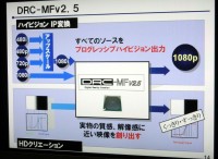 「DRC-MFv2.5」に関しては、X90ではアップスケールはデコーダー処理で行っているため、DRCは1080iにアップスケールした映像から1080pへのI/P変換処理を担当している。その際、「HDクリエーション」と呼ばれる機能によって、解像感などを上げていく処理を施している。