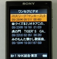 録画した番組は、「ワンセグビデオ」から選択して視聴できる。番組一覧画面でのサムネイル表示には対応していないが、未視聴の番組には「NEW」アイコンが表示されるなどの工夫により使い勝手を高めている。