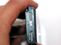 なお、本体裏面にはくぼみが付いており、ここに付属のスタンドチップを挟むと、本体を斜めにして置くことができる。付属のスタンドチップは、10円硬貨などでも代用ができるという。