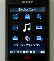 ホームメニュー液晶ディスプレイは2.4型、320×240ドットで、横画面と縦画面の両方でワンセグを視聴可能。ホームメニューにワンセグアイコンを新設し、ここからワンセグ視聴を開始する。なお、本機のワンセグ機能は、データ放送と緊急避難放送には対応していない。