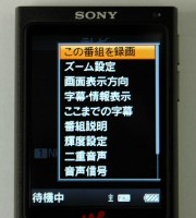 ワンセグ視聴時に「Option」ボタンを押すと、PCの右クリックのような感覚で、可能な操作の一覧が表示される。放送視聴時には「この番組を録画」機能で録画を開始できるほか、画面サイズをオート/フル/オフの3つから選択できるズーム設定も利用可能。さらに、字幕の表示も切り替えることができる。