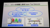 発表会で製品の詳細を説明したのは、ソニー(株)テレビ事業本部 E事業開発部部長の白石由人氏。オーガニックパネルは「トップエミッション」「マイクロキャビティ」「完全個体封止」の3つからなる「Super Top Emission(スーパートップエミッション)」技術により高い表示性能を実現していると説明した。