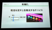 井原氏は、電流が通ると発光する有機材を使ったテレビのメリットとして、「バックライトが必要な液晶、放電空間が必要なPDPと違って非常に薄くなるし、今まで見たことの無いような高画質が楽しめる」と説明。また同社としては、有機ELを用いたパネルを「ORGANIC PANEL」と名付け、環境へのやさしさも備えるデバイスであることもあわせてアピールしていく考えが示された。