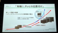 「有機ELテレビの試作機を発表したのち、すぐに市場関係者を中心に大きな反響をいただいた」という井原氏は、今後の商品戦略について「すぐに現在の液晶テレビを置き換えるものではないが、液晶テレビの“次”に位置づけられる、非常にポテンシャルの高い技術だと思っている。有機ELテレビの開発に関わる全ての方々と一緒になって、関連産業を育成して行きたい」と豊富を述べた。