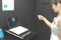 またブースの一角では画面上での指のジェスチャー動作で操作するリモートコントロールシステムの体験展示コーナーも設けている。こちらはノートPCに搭載した小型カメラでユーザーの指の動きを検知し、DVD再生の基本操作を行うことができるという、独自の手形状認識アルゴリズム。現在はまだ研究段階の技術だが「なるべく早い時期にPCをはじめとするアプリケーションに搭載していきたい」(展示説明員談)という。