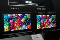 フラグシップモデル「Z3500」シリーズは、その高画質と多機能を紹介するデモに力が入っている。高画質の紹介では、“パワー・メタブレイン”を搭載した「Z3500」と前機種の「Z2000」との画質比較を展開。優れた階調表現性能や、色再現性能の実力を披露していた。合わせて「フルHD・モーションクリア」による、独自の高精度動きベクトル補間技術のデモも行われている。