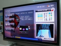 インターネットを使った情報配信サービスとして初めて「Yahoo! HD for AQUOS」を参考展示。本サービスは、Yahoo! JAPANが用意する各種情報をインターネットを介して楽しめるというもの。フルHDを活かしたコンテンツを楽しめるのが特徴で、デモでは「地図情報」「ブックス」「絵本」「グルメ」のメニューを体験することができる。