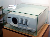 液晶プロジェクターはデータ用の高輝度モデルも参考出品された。1920×1080のフルHD表示に対応した本機は、5,000ルーメンという超高輝度を実現。通常照明下でも十分な明るさをキープできるとして、プレゼンテーション用途などに最適であるとアピールする。