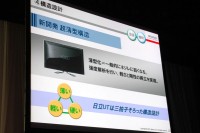 前述の通り、モニター部は最薄部3.5cm、最厚部3.9cmという薄型筐体を実現。この薄さを実現するために4つの技術が用いられたという。1つは、開口率が高いIPSαパネルの採用により、省電力で輝度をキープできたこと。パネルモジュールの薄さは約20mmで、従来比約1/2に抑えた。バックライトの蛍光管とパネルの距離が短くなるため、従来の反射板では輝度ムラが起きるが、今回、拡散板を新開発することで克服したという。