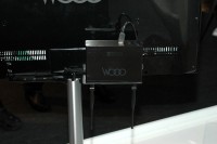 前述の通り、モニター部とWoooステーションの間は、HDMIケーブルで接続するほか、オプションで用意されたワイヤレスユニットをそれぞれのHDMI端子に接続することで、無線接続することも可能。無線方式には4.2〜4.8GHz帯のUWBを用い、最大約9mまで離して設置することができる。ビットレートは約160Mbpsで、映像はJPEG2000で圧縮する。同社説明員によると、Woooステーションに複数のワイヤレスユニットを接続することは可能だが、実際に送信するのはそのうち1つに限られるという。