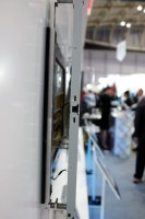 LGも超薄型液晶を開発。サイズは42型、フルHD対応で奥行きは19.8mmを実現している。また「Multi Touch Screen」として47型液晶の両ディスプレイを展示。画面に表示されたGoogle Earthを指先で操作するデモが行われた。車載向けディスプレイとしては、10.1型の「Free Form LCD」を出展。ダッシュボードの形状に合わせて設計できるのが特徴だ。