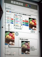 屋外用やPC向けなど、業務向けの液晶ディスプレイの新技術を展示する。同社が開発した「NCM」は、よりリアルな映像表現が可能な色変換技術。ディスプレイに入力されたRGBデータをRGB、CMY、輝度成分に分解し、マトリクス演算を行うことで、より実物に近い色再現が可能になるという。