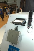 ケンウッドはDLNA機能に対応するネットワークモジュールの試作機を展示している。本機を1DINタイプのCDレシーバーと、ポータブルオーディオプレーヤー、一体型オーディオシステムに組み込んだテスト機による、無線通信のデモが行われていた。今回はプロトタイプの展示によるライフスタイル提案が行われていたが、展示説明員によれば著作権保護技術を含んだ「DLNAガイドラインVer.1.5」が一般化されれば、家庭内のPCに保存した楽曲データを、カーAVでダウンロードして楽しむという便利な使い方も可能になるということだ。
