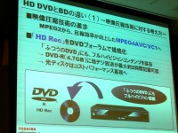 所氏はHD Recの利点についても言及。DVDディスクをHDVRフォーマットで初期化することで、HD DVDディスクと同様、DVDにもHD記録が可能になるとし、TS/VRはもちろん、H.264で記録したTSEタイトルの録画が行え、さらにこれらのタイトルを1枚のディスクに混在することが可能というメリットを紹介した。