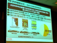 また、HD DVDを搭載したPCが増えていることも強調。「現在、1,000ドル程度のPCにHD DVDドライブが搭載される例が増えている。これはドライブが安くなってきたことが原因で、4Qには20万台のHD DVD搭載PCが北米で販売される」とした。今後、PCにHDMI端子が搭載されることが増えることで、PCでのHDコンテンツ再生機会がさらに増えるとも述べ、「2008年にHD DVD搭載PC市場は500万台へ拡大する。これはかなりの確率でそうなる」とした。