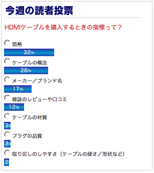 HDMIケーブルは価格重視 −「今週の読者投票」結果発表(10/31〜11/6)