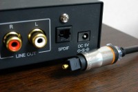 ポイントになりそうなのは出力端子のちがいだ。アナログ/デジタル1系統ずつというのは共通だが、その端子形状が異なる。AirMac Expressのそれは光デジタル/アナログ兼用のミニジャックで、一般的なオーディオ機器につなぐには丸形→角形やミニプラグ→ステレオピンプラグの変換ケーブルが必要。ケーブルの選択肢は多くはない。一方REX-Link2EXには角形光とステレオピンが用意されており、一般的なケーブルを利用できる。この点は有利だ。